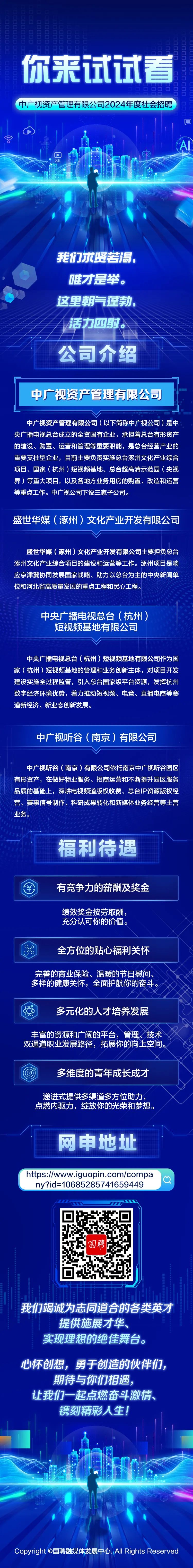 中廣視資產(chǎn)管理有限公司2024年度社會招聘