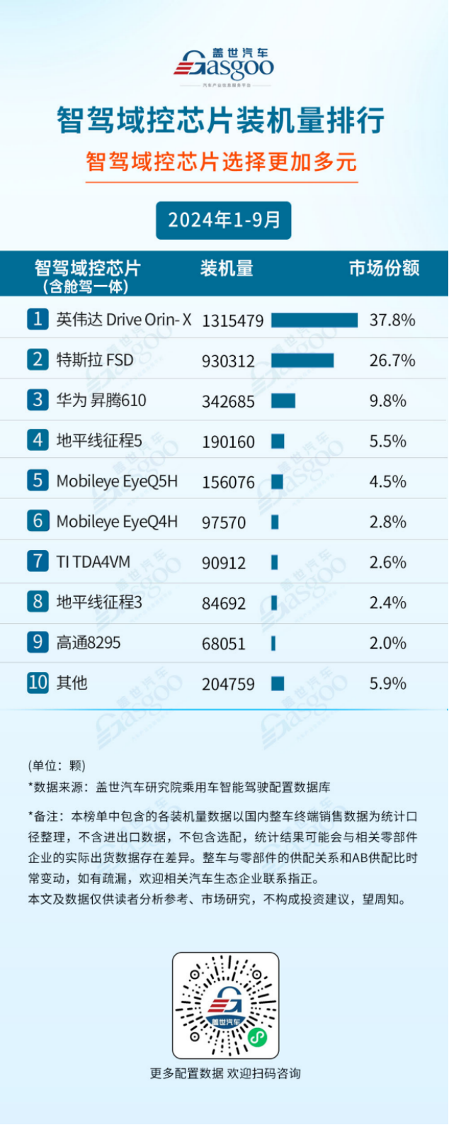 智駕域控芯片供應(yīng)商裝機(jī)量排行 來源:蓋世汽車研究院