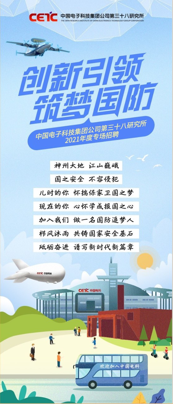 中國(guó)電子科技集團(tuán)公司第三十八研究所(以下簡(jiǎn)稱中國(guó)電科38所),1965年建于貴州,1988年底整體遷建合肥市,現(xiàn)有員工3000多人,平均年齡34歲,是國(guó)家一類研究所,我國(guó)國(guó)防高科技電子裝備骨干研究所,有中國(guó)軍工電子“國(guó)家隊(duì)”的美譽(yù)。