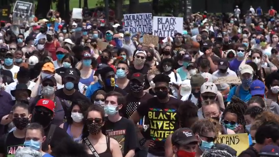 華盛頓警察表示,當(dāng)天約有3000抗議者中午時分在林肯紀(jì)念堂聚集,另外約3000人在白宮附近匯合。另有數(shù)百民眾行經(jīng)華盛頓大學(xué)醫(yī)院游行,呼喊“我們?yōu)橄M羞M(jìn),不是為仇恨”,“我無法呼吸!”等口號。
