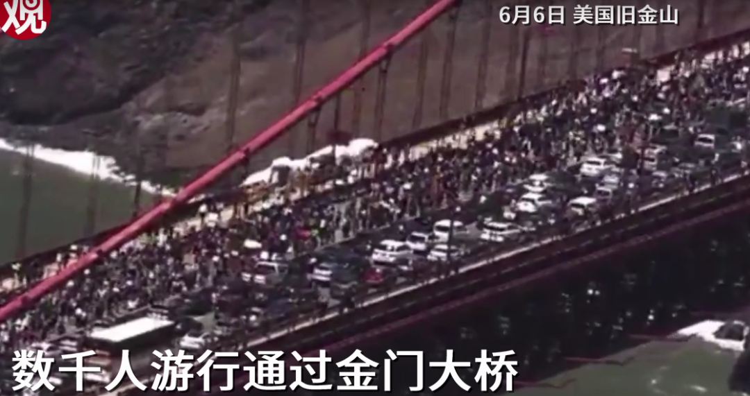 在舊金山,示威者在金門大橋的游行一度致使橋上交通受阻。