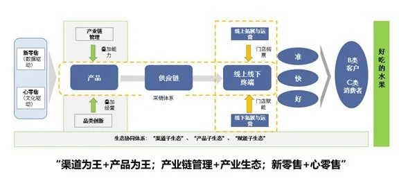 1.全球基地。如何在全球找到并掌控好吃水果基地,與好吃水果種植商建立長期合作伙伴關(guān)系。為此白果園培養(yǎng)和招募了上百個專業(yè)“吃貨”在全球搜集好吃的水果品種,有的是自建基地,有些是跟國際知名公司去合作,構(gòu)建的是一個優(yōu)質(zhì)的產(chǎn)品生態(tài)體系。2.優(yōu)選品種。果品行業(yè)也是高科技,需要通過科技創(chuàng)新優(yōu)選品種,改良品種。在品種優(yōu)選技術(shù)方面以色列、日本等國走在前列,百果園引進國外技術(shù),賦能于生產(chǎn)基地與種植方。3.生態(tài)種植。百果園主動與肥料廠合作,開發(fā)有機生態(tài)肥。4.科學采摘。建立不同品類水果的科學采摘標準與流程。5.全程冷鏈。冷鏈物流是重資產(chǎn)投入,通過社會協(xié)同合作及供應(yīng)鏈金融,構(gòu)建全程冷鏈系統(tǒng)。 6.嚴格標準。中國水果企業(yè)做不大,就是因為這個行業(yè)沒標準,所以百果園構(gòu)建了四度一味一安全的百果園的標準。正是打造了全產(chǎn)業(yè)鏈的六要素產(chǎn)業(yè)生態(tài)管理體系,百果園才能兌現(xiàn)為顧客提供好吃、安全水果的承諾。在中國要構(gòu)建全產(chǎn)業(yè)鏈的生態(tài)管理系統(tǒng)是很難的。如果全部由自己投資每個環(huán)節(jié),勢必需要巨額資金投入并形成重資產(chǎn),而百果園只能走輕資產(chǎn)、重管理模式,走開放合作的道路,而開放合作的每個環(huán)節(jié)可能都有陷阱,都有風險。百果園首先是真正把這種為消費者提供好吃的水果作為一種信念,將產(chǎn)業(yè)生態(tài)的構(gòu)建作為一種戰(zhàn)略,長期投入,長期去做。其次是以“信任”和“利他”去與產(chǎn)業(yè)生態(tài)各方開放合作,構(gòu)建線上線下高度融合的產(chǎn)業(yè)生態(tài)賦能系統(tǒng),從而贏得產(chǎn)業(yè)生態(tài)各方認可和信賴。余董將百果園的戰(zhàn)略歸納為“兩駕馬車”和“三大支柱”。1.渠道品牌建設(shè):輕資產(chǎn)、重品牌、重管理有好產(chǎn)品如何賣出去,怎樣把好果品賣好,讓顧客有好的購買體驗?這就是百果園的第一架馬車——渠道、品牌為王,以百果園為核心的渠道品牌建設(shè)。百果園的渠道建設(shè),走的是輕資產(chǎn)、重品牌與重管理的模式,以切入社區(qū)的實體店、專營店,線上線下一體化,形成全場景的服務(wù)體驗。但百果園目前擁有的切入社區(qū)的五千家實體店均不是自己投資的,實體店所有權(quán)歸有資本和有能力的合作伙伴所有。百果園基于數(shù)字化平臺對渠道實現(xiàn)統(tǒng)一的、一體化的管理,從而實現(xiàn)了低成本、高效率、規(guī)?;l(fā)展。由于實體店是店主自己投資,這就解決了責任心與自主經(jīng)營的問題,同時,基于產(chǎn)業(yè)互聯(lián)網(wǎng)思維,所有的客戶信息流、資金流、物流等都在百果園統(tǒng)一的數(shù)字化管理平臺上。這有點類似于溫氏模式。溫氏用產(chǎn)業(yè)互聯(lián)網(wǎng)思維連接了五萬六千多家家庭農(nóng)場,并提供從種禽供給、飼養(yǎng)生產(chǎn)服務(wù)到銷售的全價值鏈服務(wù)。某種意義上,百果園是一家渠道品牌管理服務(wù)公司。未來百果園將線上線下連接三萬家共享品牌與平臺化服務(wù)的實體店,這些自主經(jīng)營的實店將滲透中國社區(qū)終端,為顧客帶來全方位的好水果購買體驗。2. 品類品牌建設(shè):產(chǎn)業(yè)生態(tài)的管理與賦能有好渠道,必須要靠好果品來成就,這就是百果園的第二駕馬車——品類品牌。中國的農(nóng)產(chǎn)品一直逃脫不了低價競爭的命運,無序的低價競爭使全產(chǎn)業(yè)鏈都處于無利可圖的困境。沒有利潤就沒有技術(shù)、人才、資本的投入,要改變這種狀況,唯有打造品牌,提升產(chǎn)品的品牌溢價,尤其是要打造品類品牌。而要打造品類品牌,則是一個系統(tǒng)工程,它涉及種植系統(tǒng)、供應(yīng)鏈系統(tǒng)、渠道系統(tǒng)等,其中最核心的是如何掌控種植系統(tǒng),能產(chǎn)出好果品。種植業(yè)系統(tǒng)又涉及品類基地、品種優(yōu)選、生態(tài)種植、營養(yǎng)管理、植物保護、園藝等系統(tǒng)。百果園從傳統(tǒng)零售商轉(zhuǎn)型為產(chǎn)業(yè)生態(tài)的管理者與賦能者,如為志同道合的種植合作伙伴提供全方位賦能。你缺技術(shù),我給你引進先進技術(shù);你缺錢,我給你提供資金;你沒品牌,我?guī)湍阕銎放扑茉?;你沒渠道,我給你提供或拓寬渠道。只要你認同為消費者提供好吃水果的理念,你就全身心投入其中,用工匠精神對待你從事的事業(yè),致力于打造出世界級的果品品類品牌。百果園已打造出二十個左右的品牌,開始贏得消費者的認可和信賴。要“讓天下人吃上更好的水果”,就不是百果園一家企業(yè)的使命和責任,而是整個產(chǎn)業(yè)生態(tài)共同的使命與責任,這就需要企業(yè)確立生態(tài)共生戰(zhàn)略思維,打造產(chǎn)業(yè)生態(tài)優(yōu)勢。要構(gòu)建產(chǎn)業(yè)生態(tài),需要把握幾個關(guān)鍵詞:信任、利他、開放、長板、融合。要構(gòu)建農(nóng)產(chǎn)品產(chǎn)業(yè)生態(tài),首先是產(chǎn)業(yè)生態(tài)各參與方要彼此信任。比如溫氏,為什么能連接五萬六千多家農(nóng)場,通過基于互聯(lián)網(wǎng)的賦能平臺為五萬六千多家農(nóng)場提供從種禽、養(yǎng)殖標準化、