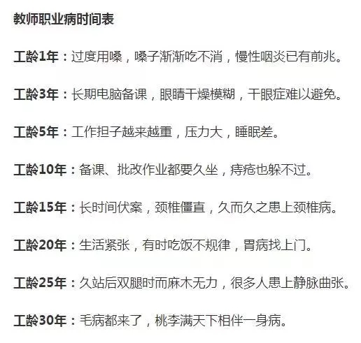 畢竟,學(xué)校圈子單純,人際關(guān)系舒服,學(xué)生聽話懂事,一切也值得??蓪?shí)際上,教師工作并不輕松。總有人說,老師光一年三個(gè)月假期就夠讓人羨慕了。假定是3個(gè)月,也就差不多13周,這13周原本就有法定周末(全國統(tǒng)休),加上放假后組織批改試卷、學(xué)期總結(jié),假期中間集中培訓(xùn)學(xué)習(xí),開學(xué)前兩周各種開會(huì)、做入學(xué)準(zhǔn)備……與此同時(shí),班主任老師還要處理家訪、去向調(diào)查等等。這些就不說了,最近幾年,全國不少地方都在搞晚托,時(shí)間越來越晚,從五點(diǎn)半到六點(diǎn)半,甚至到七點(diǎn)半。今年開始,教培機(jī)構(gòu)被大力管控,孩子沒人管了,誰來管呢?老師來??!于是,地方學(xué)校政策花樣百出,很多老師今年就沒了暑假。過完這個(gè)8月,誰都不清楚,老師應(yīng)該什么時(shí)候下班最合適,老師應(yīng)該什么時(shí)候休假最合適,而雙教師的家庭,又該面臨怎樣的困境。作為老師,你得備課、上課、聽課、評(píng)課、公開課、寫教案、寫計(jì)劃、寫總結(jié)、出卷子、改卷子、布置作業(yè)、改作業(yè)、寫論文、做課題、搞比賽、學(xué)技術(shù)、評(píng)職稱、思想?yún)R報(bào)、家長會(huì)、運(yùn)動(dòng)會(huì)……而當(dāng)你成為一個(gè)班主任,那么這個(gè)工作量,直接翻倍,要應(yīng)付的遠(yuǎn)不止學(xué)校的各種檢查,幾十個(gè)調(diào)皮搗蛋的孩子,還有幾十位家長“突然的關(guān)心”。哪里需要30年,當(dāng)個(gè)三五年,你就會(huì)發(fā)現(xiàn),頭發(fā)少了,皺紋多了,頭痛咽喉痛腰痛胃痛腿痛全身痛……