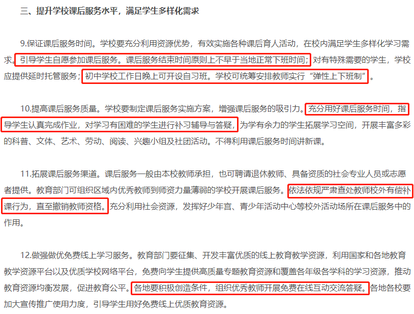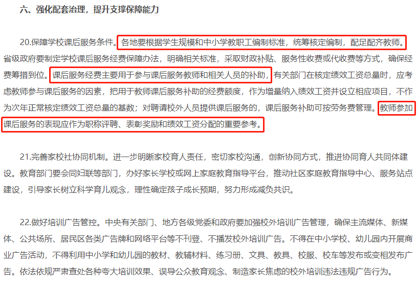 其中涉及學生作業(yè)、課后服務、校外培訓、提升支撐保障能力等問題,與各位老師們聯(lián)系緊密,大家要關注起來!