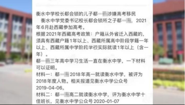 王老師當(dāng)眾表?yè)P(yáng)袁華,說(shuō)他作文比賽獲得全區(qū)一等獎(jiǎng)。夏洛接了一句:王老師,那是比學(xué)習(xí)的嗎?那是拼爹呢。幾年后的今天,段子照進(jìn)現(xiàn)實(shí),一段《我的衡中校長(zhǎng)爸爸》橫空出世。澎湃新聞報(bào)道,有人發(fā)帖舉報(bào),衡水中學(xué)校長(zhǎng)郗會(huì)鎖之子郗某某“高考移民”。所謂高考移民,就是為了達(dá)到上大學(xué)或者上好大學(xué)的目的,利用特殊手段,向錄取分?jǐn)?shù)線(xiàn)低,錄取率高的省份流動(dòng)。郗某某2018年加入西藏戶(hù)籍,同年,他進(jìn)入高一。高中三年,他一直在衡水中學(xué)讀書(shū),衡水中學(xué)公眾號(hào)上,每年都有他的動(dòng)態(tài)。也就是說(shuō),他戶(hù)籍在西藏,學(xué)籍在衡水中學(xué)。享受了河北最優(yōu)秀的師資,高水準(zhǔn)的學(xué)習(xí)管理,跑到教育相對(duì)落后的西藏考試,對(duì)整個(gè)西藏的考生,都是降維打擊。2016年7月到2018年4月,郗會(huì)鎖在西藏阿里地區(qū)教體局擔(dān)任職務(wù)。根據(jù)政策規(guī)定,援藏滿(mǎn)3年,子女戶(hù)籍在西藏的,可以參加西藏的高考。誰(shuí)都知道,西藏高考試卷更簡(jiǎn)單,報(bào)考人數(shù)更少,錄取率更高。這是對(duì)援藏干部辛勤付出的一種回報(bào)。郗會(huì)鎖援藏沒(méi)滿(mǎn)3年,他兒子顯然不符合這個(gè)政策。如果他兒子去西藏讀一年書(shū),學(xué)籍滿(mǎn)一年,綜合所有的條件,他是可以參加西藏的高考。問(wèn)題就出在,他是一個(gè)精致的利己主義者。如果他多堅(jiān)持一年,兒子的高考不存在任何問(wèn)題。可這樣一來(lái),他將失去出任衡水中學(xué)校長(zhǎng)的機(jī)會(huì)。他不把孩子送去西藏讀書(shū),卻占著西藏高考制度的便宜。他強(qiáng)調(diào)努力改變命運(yùn),輪到自己孩子,卻踐行拼爹才是王道。如果不是被舉報(bào),這個(gè)空子,可能已經(jīng)鉆成功了。最終,西藏教育考試院回應(yīng)稱(chēng),已取消郗某某報(bào)考資格。當(dāng)衡中的校長(zhǎng),用投機(jī)取巧的方式為孩子鋪路,就狠狠打了教育公平的臉。當(dāng)他鉆制度的空子時(shí),有沒(méi)有想過(guò)西藏那些貧窮孩子?他們千辛萬(wàn)苦克服困難,等一次高考改變命運(yùn),可郗會(huì)鎖們的孩子,用全國(guó)數(shù)一數(shù)二的應(yīng)試水平,擠掉了他們的機(jī)會(huì)。一個(gè)精致的利己主義者,最懂得如何快速達(dá)成目標(biāo)和利益。他們不會(huì)顧及對(duì)別人造成了痛苦和損失。在他們眼中,鉆空子不是什么錯(cuò)誤,而是一種“人不為己天誅地滅”的正確。