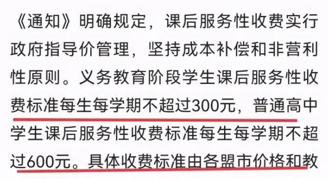 當(dāng)然也有一些經(jīng)濟(jì)發(fā)達(dá)的地區(qū),對(duì)此則是按照每位學(xué)生每天五元來(lái)進(jìn)行收費(fèi)。其實(shí)不管怎樣計(jì)算,每個(gè)地區(qū)的收費(fèi)基本上都在1000元以內(nèi),和以前校外機(jī)構(gòu)幾千幾萬(wàn)的學(xué)費(fèi)相比,可以說(shuō)是相當(dāng)廉價(jià)了。