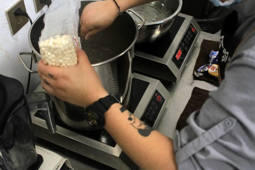 一天下來,胳膊早就搖酸了,還要統(tǒng)計(jì)配料的使用情況,調(diào)整配送計(jì)劃。然后清洗打掃,很晚回家。周末更加不能休息,因?yàn)槟滩璧匿N量會比工作日更高。