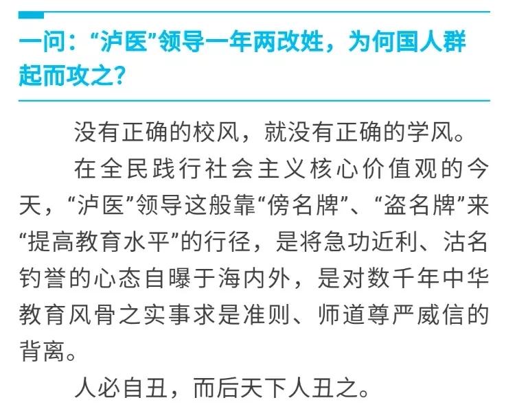 西南醫(yī)院院長郭繼衛(wèi),直接用西南醫(yī)院官方微信發(fā)文《高校更名之爭,毛病到底出在哪兒》,七問原瀘州醫(yī)學院,稱其本質「不在于更名,而在于盜名也」。(圖源:西南醫(yī)院微信公眾號 )
