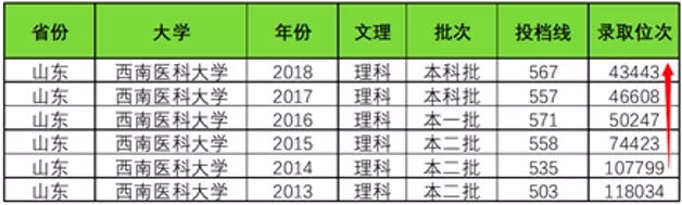 在與四川大學持續(xù)了長達半年的校名之爭后,2016 年 1 月 17 日,「四川醫(yī)科大學」再次更改,將新校名「西南醫(yī)科大學」的招牌掛上。雖然更名過程中遭受了不少外界的非議,但更名后分數(shù)線和錄取位次卻獲得了立竿見影的拉升。以該校在高考大省山東的錄取分數(shù)線為例,2015 年更名前,學校分數(shù)線在 530 分以下,錄取位次(指最低分數(shù)錄取考生在全省的排名)約在 10 萬名以外;2015 年更名后,學校錄取分數(shù)線最高曾達到近 570 分,錄取位次更是一路從全省 10 萬名開外上升到全省 4 萬名左右。再看如今四川省內(nèi)的醫(yī)學人才培養(yǎng)局面,除華西外,便是成都中醫(yī)藥大學和西南醫(yī)科大學。在四川省內(nèi)的錄取分數(shù)線,兩所學校比肩,超越省控線 40~50 分。