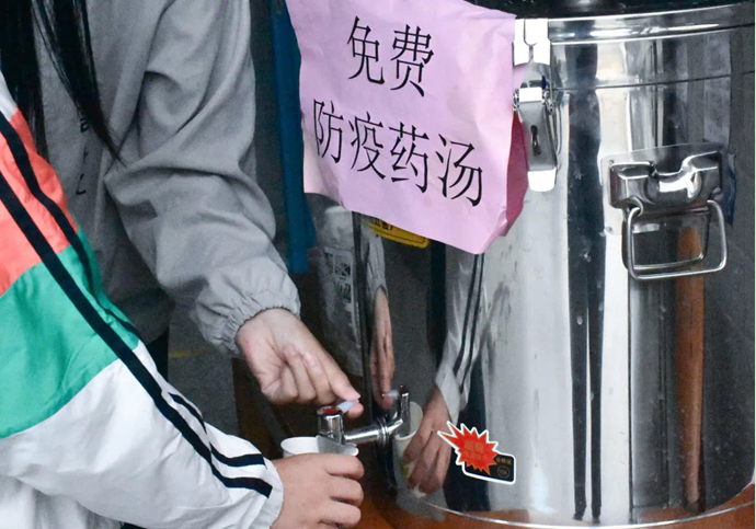 熬制了中藥防疫湯劑供學生免費飲用