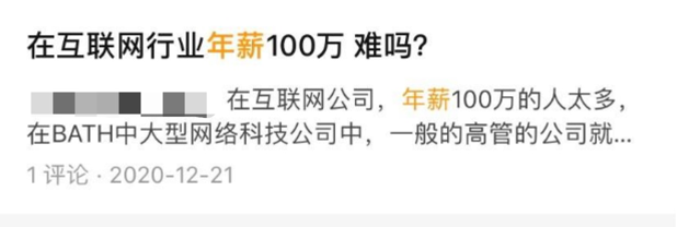 “如果你覺得口說無憑,那我本人就在互聯(lián)網公司,回答你的問題,可信度是有保障的吧。所以我說互聯(lián)網年薪百萬很容易,那就是很容易。”