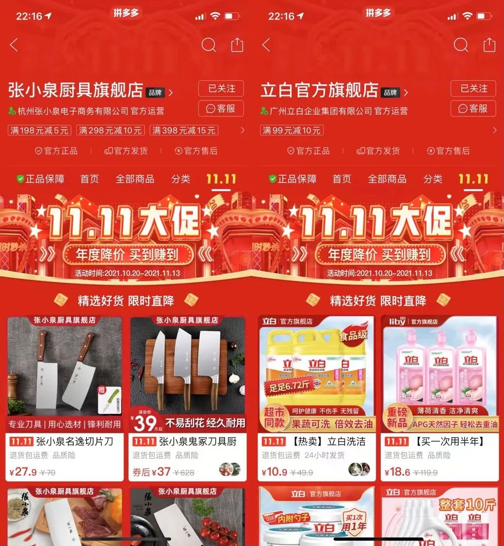 參加拼多多11.11狂歡的部分國貨品牌旗艦店。拼多多聯(lián)合央視、湖南衛(wèi)視舉辦的“超拼夜”系列活動也將重點推薦國貨品牌