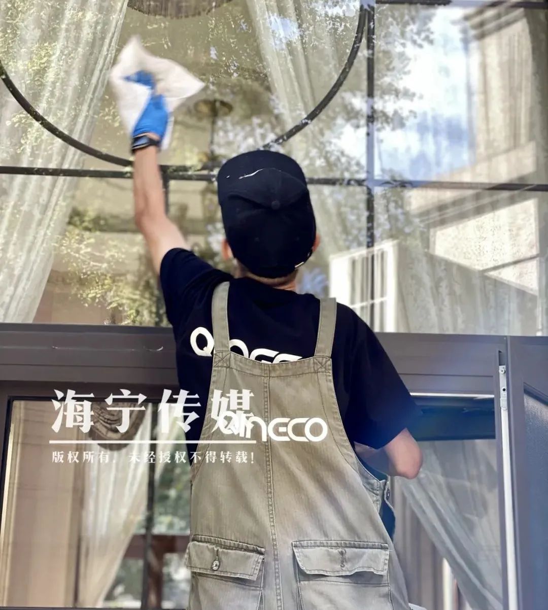 作為團隊的創(chuàng)始人,王梓乾也親力親為,雖然話并不多,不過大潮君在現(xiàn)場看到,干起活來的他動作特別利落,超大的玻璃沒一會兒工夫就變得格外透亮。