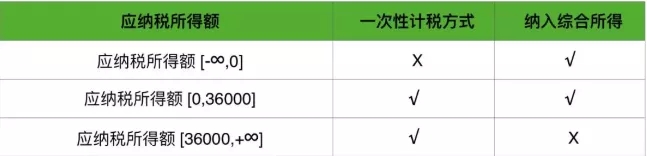 # 當(dāng)應(yīng)納稅所得額大于36000時(shí),一次性計(jì)稅方式合適。