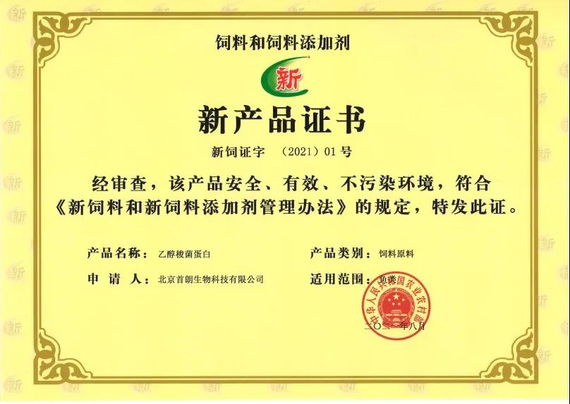 飼料原料新產(chǎn)品證書 首鋼朗澤供圖