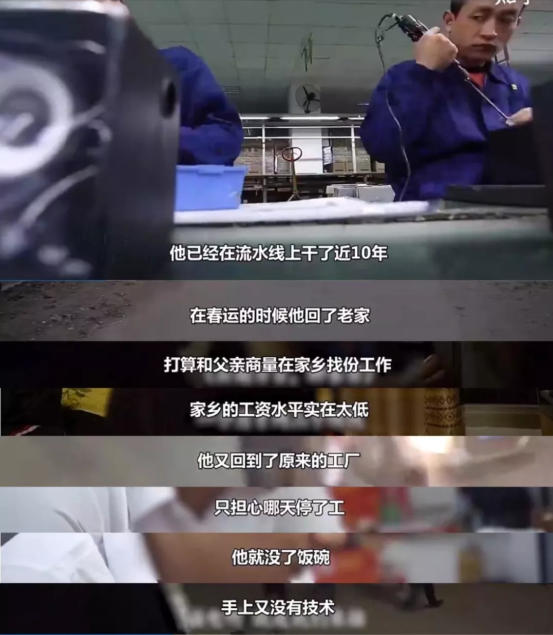 他和家人商量回家鄉(xiāng)找工作,可是他發(fā)現(xiàn),自己在工廠熬了這么多年,只會做流水線上的事。