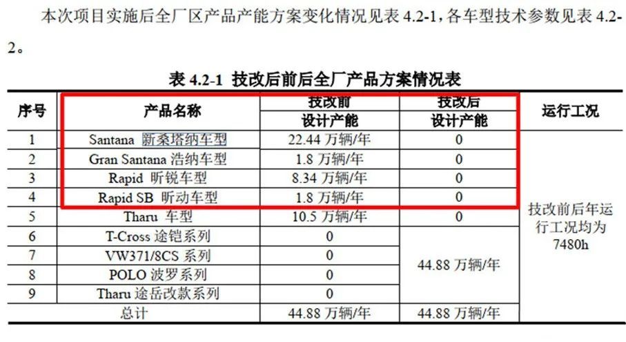 這份計劃書寫道,在上汽大眾完成車型技術(shù)改造之后,包括桑塔納在內(nèi)的5款車型將會停產(chǎn),轉(zhuǎn)而投產(chǎn)中期改款途岳、換代凌渡、Polo、途鎧等4款車型。