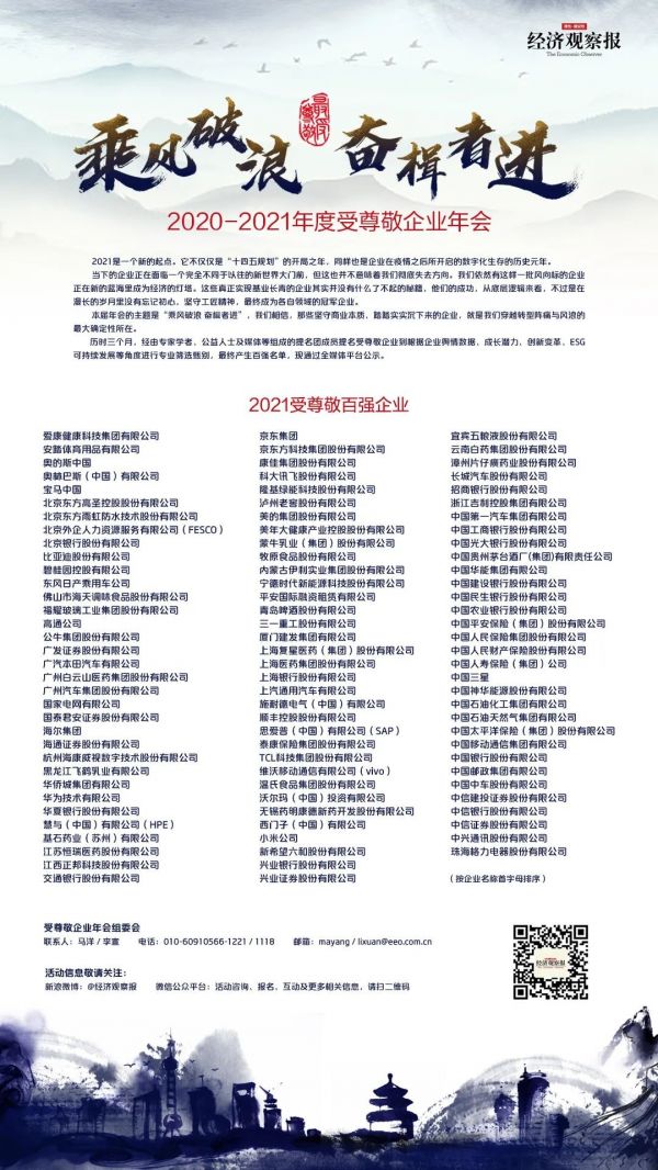 2001年由經(jīng)濟(jì)觀察報社與國內(nèi)知名商學(xué)院聯(lián)合發(fā)起的“受尊敬企業(yè)評選”時至今日已成為年度重要品牌活動。我們見證了400多家世界及中國500強(qiáng)企業(yè),100多家新經(jīng)濟(jì)獨(dú)角獸企業(yè)的成長與發(fā)展。