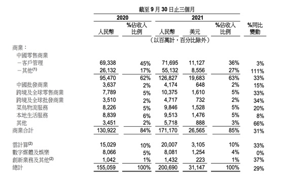 最新財報披露的數(shù)據(jù)是:阿里收入同比增長29%至2006.9億元,主要由中國零售商業(yè)業(yè)務(wù)的收入增長(其中包括自2020年10月起合并高鑫零售)及云計算業(yè)務(wù)的收入增長所驅(qū)動,但若不考慮合并高鑫零售的影響,集團收入同比增長16%至1804.38億元。