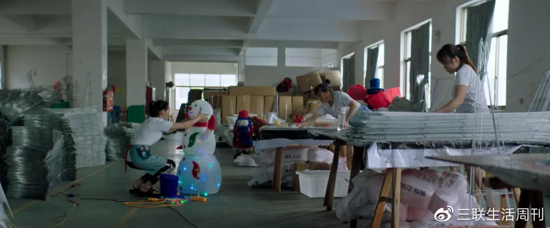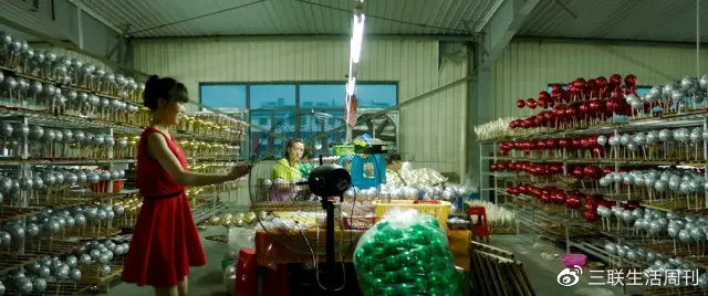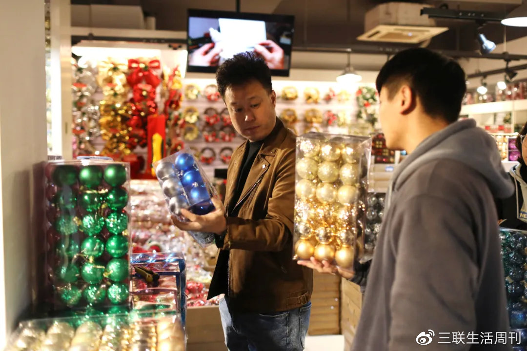 現(xiàn)在他的辦公室附近有一個展示廳,包裝好的圣誕球禮盒展示在白色木架上,強烈、溫暖的燈光打下來,營造出節(jié)日氛圍。這可能是整個廠房燈光最亮的區(qū)域,在其他車間,工人們“能少開燈就少開”。