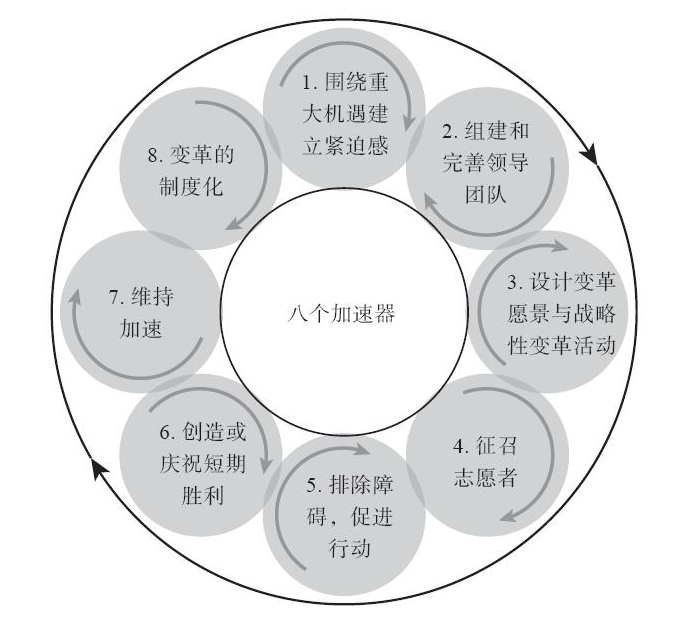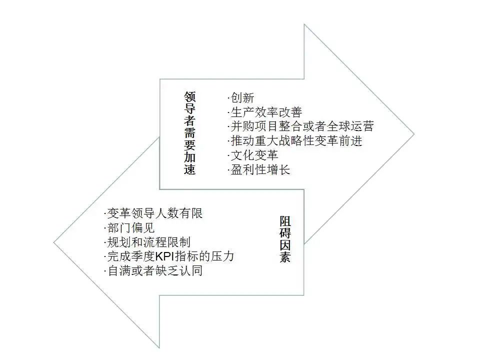 第三加速器讓領(lǐng)導(dǎo)團(tuán)隊(duì)明確一個(gè)匹配重大戰(zhàn)略機(jī)遇的愿景,并選擇能夠推動(dòng)組織快速、敏捷地邁向未來(lái)愿景的戰(zhàn)略性變革活動(dòng)。