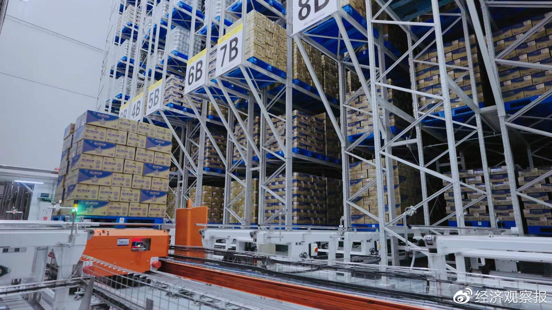 飛鶴的泰來工廠占地33萬平方米,廠內(nèi)擁有8列11層4600個(gè)貨位的全自動(dòng)立庫(kù),高聳的貨架上擺滿了待用的原料以及即將出庫(kù)的奶粉成品,它們正在等待WMS系統(tǒng)下達(dá)任務(wù),這套系統(tǒng)會(huì)告訴庫(kù)房,接下來生產(chǎn)線需要哪些原料、數(shù)量多少。