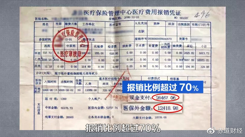?這是一張鼻咽癌治療費(fèi)用報(bào)銷單,加上12418元不在醫(yī)保范圍內(nèi)的治療費(fèi)用,患者自費(fèi)了26467元,報(bào)銷比例超過70%,而如果是現(xiàn)在,癌癥治療費(fèi)用的報(bào)銷比例,最高能達(dá)到95%。