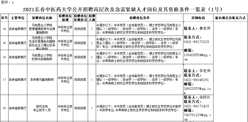 本公告共招聘高層次及急需緊缺人才19名。具體招聘崗位及條件詳見(jiàn)《2021年長(zhǎng)春中醫(yī)藥大學(xué)公開招聘高層次及急需緊缺人才崗位及其資格條件一覽表(1號(hào))》(附件1)。
