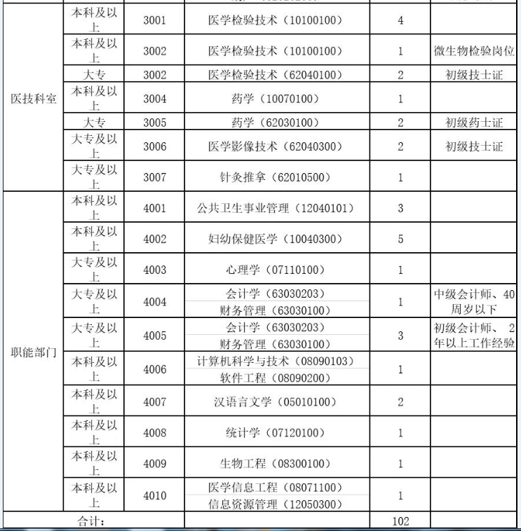 招聘對象為國家全日制統(tǒng)招的應(yīng)、歷屆專科及以上畢業(yè)生(護理專業(yè)的3+2除外)以及符合招聘崗位條件的人員,且必須符合以下條件: