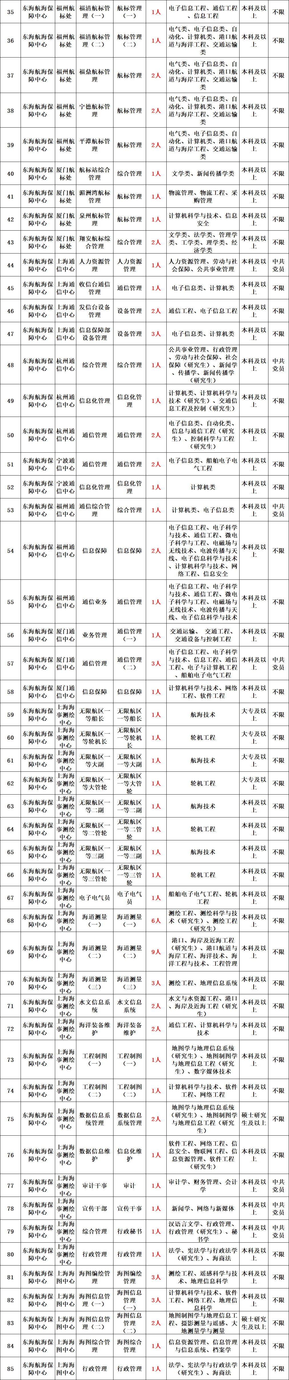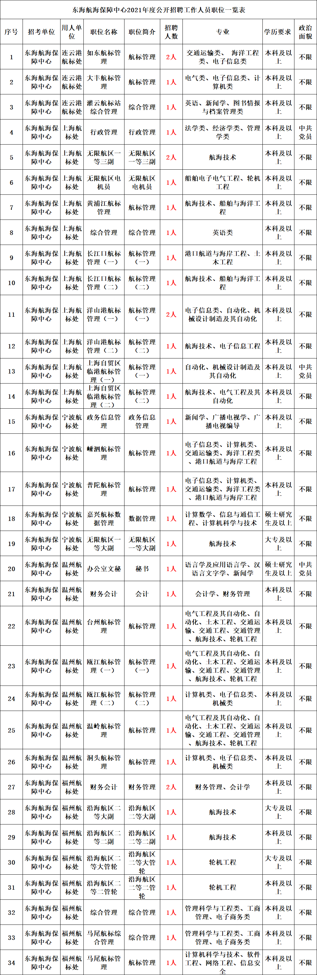 詳見《東海航海保障中心2021年度公開招聘工作人員職位一覽表》(附件1)。