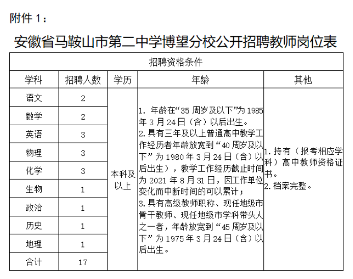 2021年安徽省馬鞍山市第二中學(xué)博望分校公開招聘教師共17名(見附件1)。