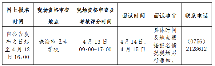 現(xiàn)場資格審查截止時間、地點如有變動,將另行通知,請考生密切關注珠海市衛(wèi)生健康局官網(wǎng)(http://wsjkj.zhuhai.gov.cn/)。