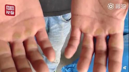 謝云南手上布滿了老繭,厚厚的好幾層,都是搬運留下來的,那是辛苦的印記。
