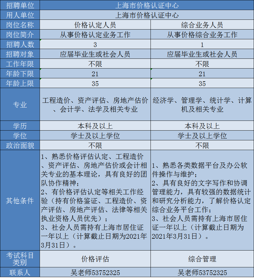 本次計(jì)劃招聘工作人員4名,其中價(jià)格認(rèn)定人員3名,綜合業(yè)務(wù)人員1名。
