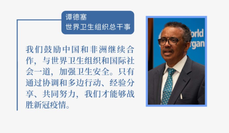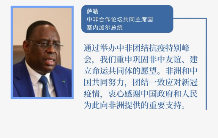 面對(duì)突如其來(lái)的新冠疫情,中非相互聲援、并肩戰(zhàn)斗,生動(dòng)詮釋了患難與共、守望相助的兄弟情誼。在此次峰會(huì)上,習(xí)主席明確表示,中方將繼續(xù)全力支持非方抗疫行動(dòng),繼續(xù)向非洲國(guó)家提供物資援助、派遣醫(yī)療專家組、協(xié)助非方來(lái)華采購(gòu)抗疫物資。
