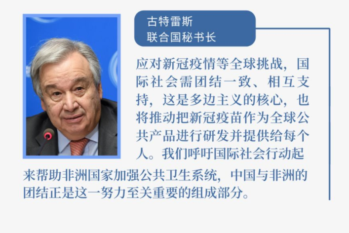 在此次峰會(huì)上,習(xí)主席提出四個(gè)“堅(jiān)定不移”,為中非抗疫合作指明方向,為中非關(guān)系未來(lái)擘畫藍(lán)圖。一句句真誠(chéng)倡議、一項(xiàng)項(xiàng)務(wù)實(shí)舉措,讓非洲國(guó)家感受到兄弟無(wú)遠(yuǎn)的中國(guó)情誼,讓國(guó)際社會(huì)感受到團(tuán)結(jié)抗疫的中國(guó)擔(dān)當(dāng)。