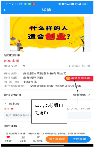 可以通過下載安徽省創(chuàng)業(yè)服務(wù)云平臺(tái)APP,申領(lǐng)測(cè)評(píng)金幣,免費(fèi)參與由智決策推出的相關(guān)測(cè)評(píng)!