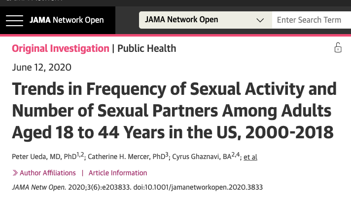 The Kaiser Family Foundation has more about sexual health and young adults. JAMA Network Open (2020). DOI: 10.1001/jamanetworkopen.2020.3833